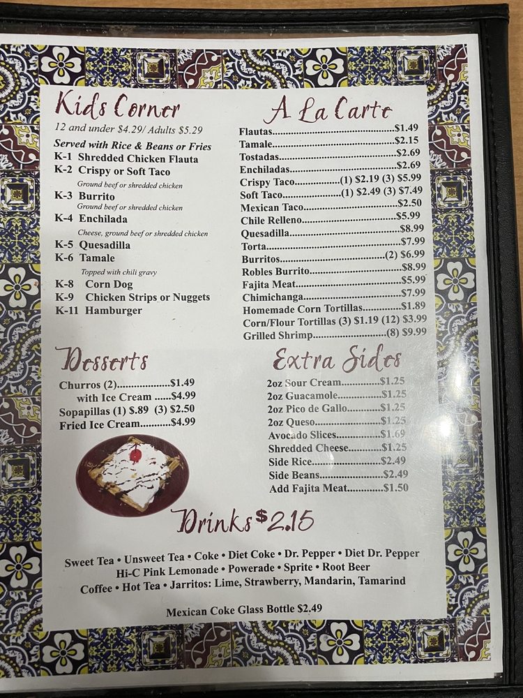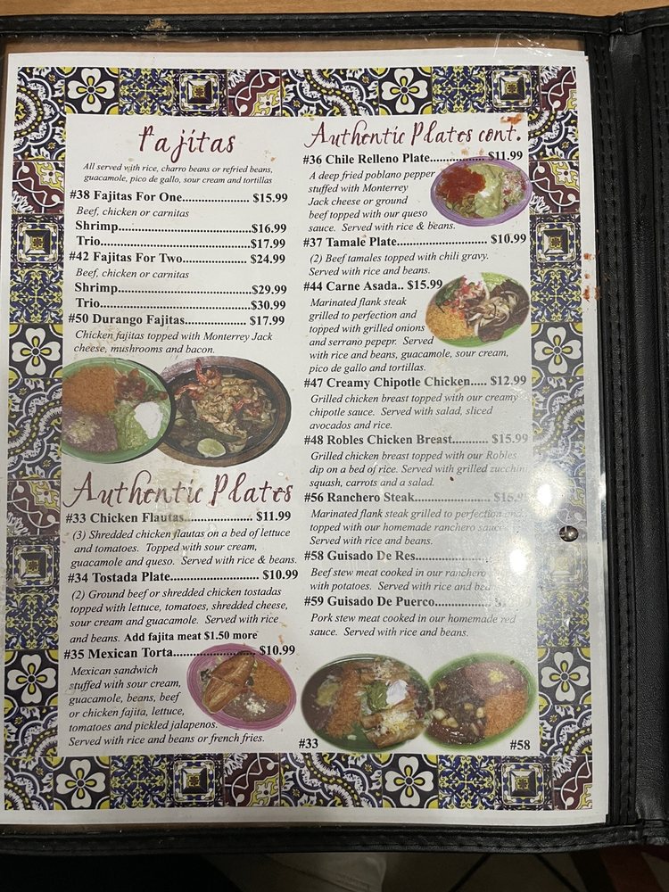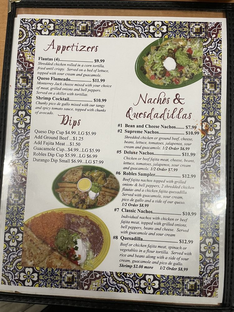 Robles Mexican Restaurant Menu